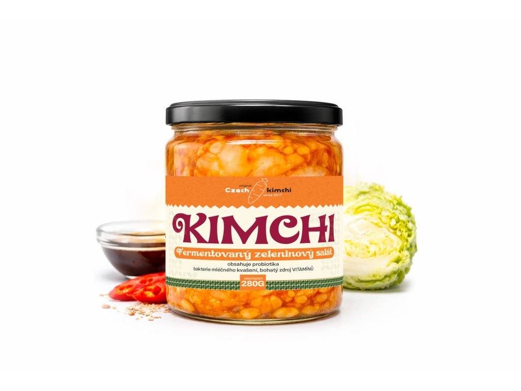 Naše kimchi je ručně vyráběno procesem fermentace (kvašení) z kvalitních surovin: pekingské zelí, mrkev, bílá ředkev Daikon, cibule, zázvor, česnek, korejské chilli Gochugaru, jablka, jarní cibulka, rýžová mouka, třtinový cukr, mořská sůl a sojová omáčka (Kikkoman). Tento produkt neobsahuje žádné konzervanty ani stabilizátory, a přirozená konzervace je zajištěna mléčným kvašením, díky kterému kimchi postupem času získává intenzivnější chuť.