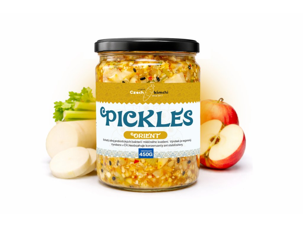 Kimchi Orient je lahodná směs devíti druhů fermentované zeleniny a ovoce, inspirovaná chutěmi Orientu. Tento ručně vyráběný fermentovaný salát obsahuje výživné ingredience jako pekingské zelí, bílou ředkev Daikon, řapíkatý celer, jablka a další, které jsou obohaceny o orientální koření Tandoori Masala, sezamová semínka a pikantní korejské chilli Gochugaru. Tato jedinečná kombinace poskytuje nejen skvělý chuťový zážitek, ale také bohatství vitamínů, minerálů a probiotik.